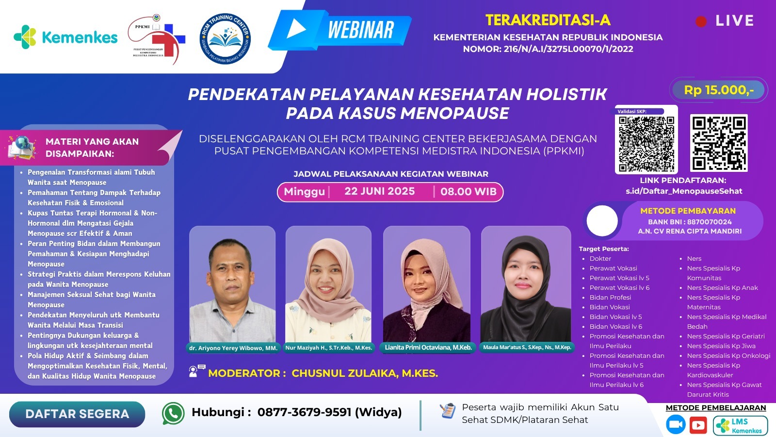 Webinar Pendekatan Pelayanan Kesehatan Holistik pada Kasus Menopause Angkatan 1