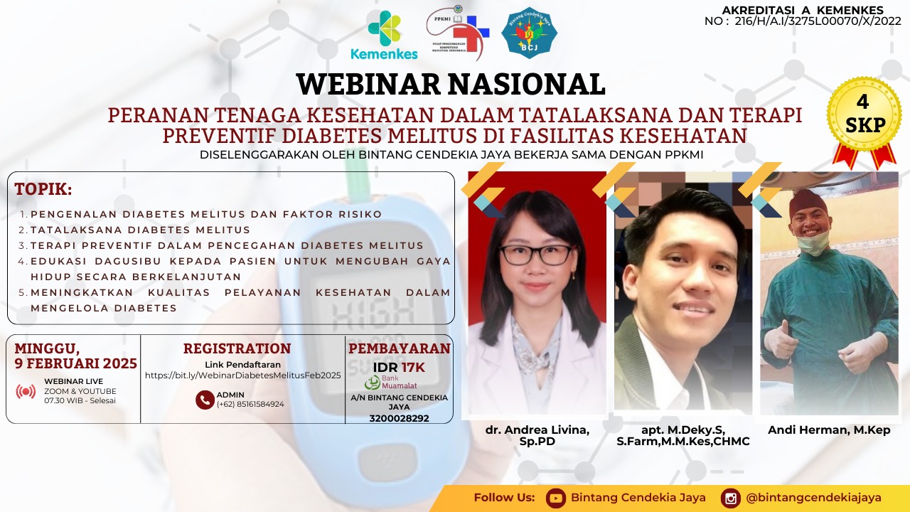 Webinar Peranan Tenaga Kesehatan dalam Tatalaksana dan Terapi Preventif Diabetes Melitus di Fasilitas Kesehatan